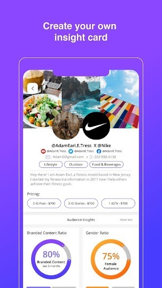 - ๐ผ Connect with Brands: Explore THOUSANDS of brands to find your ideal brand collaboration- ๐งโ๐คโ๐ง Understand your AUDIENCE: Learn what your audience wants to see with in-depth analysis on your social media performance