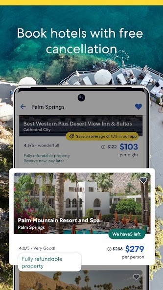 *Member Prices are available on select hotels to logged in members and app users. The discount will be applied to the price of selected hotels (excluding applicable taxes and other fees). Price predictions are not a guarantee. Available in the app to members on select routes. Expedia’s usual booking Terms and Conditions apply and Reward Terms apply, see site for details. Free cancellation on most hotels. Some hotels require you to cancel at least 24-48 hours before check-in. See property pages on our app for details.