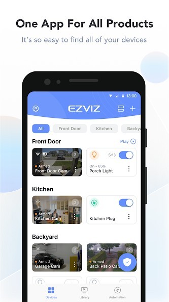 The EZVIZ app is designed to work with our series of Security Cameras and other Smart Home products. By using this app, it is so easy to manage your camera and other smart home devices remotely from across the globe any time.You can get full access and remote control of all devices functions at fingertips, and take necessary actions to ensure the safety of your homes, businesses and loved ones when receiving immediate motion detection alerts on your phone.