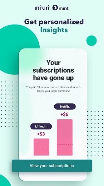 Reach your financial goals with personalized insights and custom budgets. Use Mint as a subscription manager and track your money spending ---all for free. See your monthly bills, create budgets, grow savings, & build stronger financial habits. Get the #1 personal finance and free budgeting app now*.