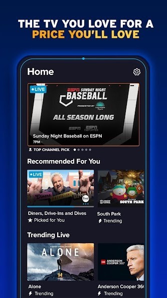Stream live sports, news, popular shows, movies & more. Get customizable channel packages, 120K+ movies and shows On Demand and 50 hours of DVR storage included. No hidden fees and no long-term contracts. Pause or customize your service at any time.Sports