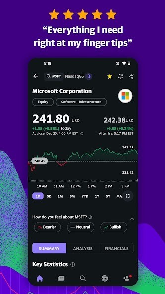 • Follow all the stocks you care about by searching for the ticker and tapping the star icon