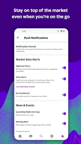 • Enable notifications for price alerts, breaking news, earnings reports, and more